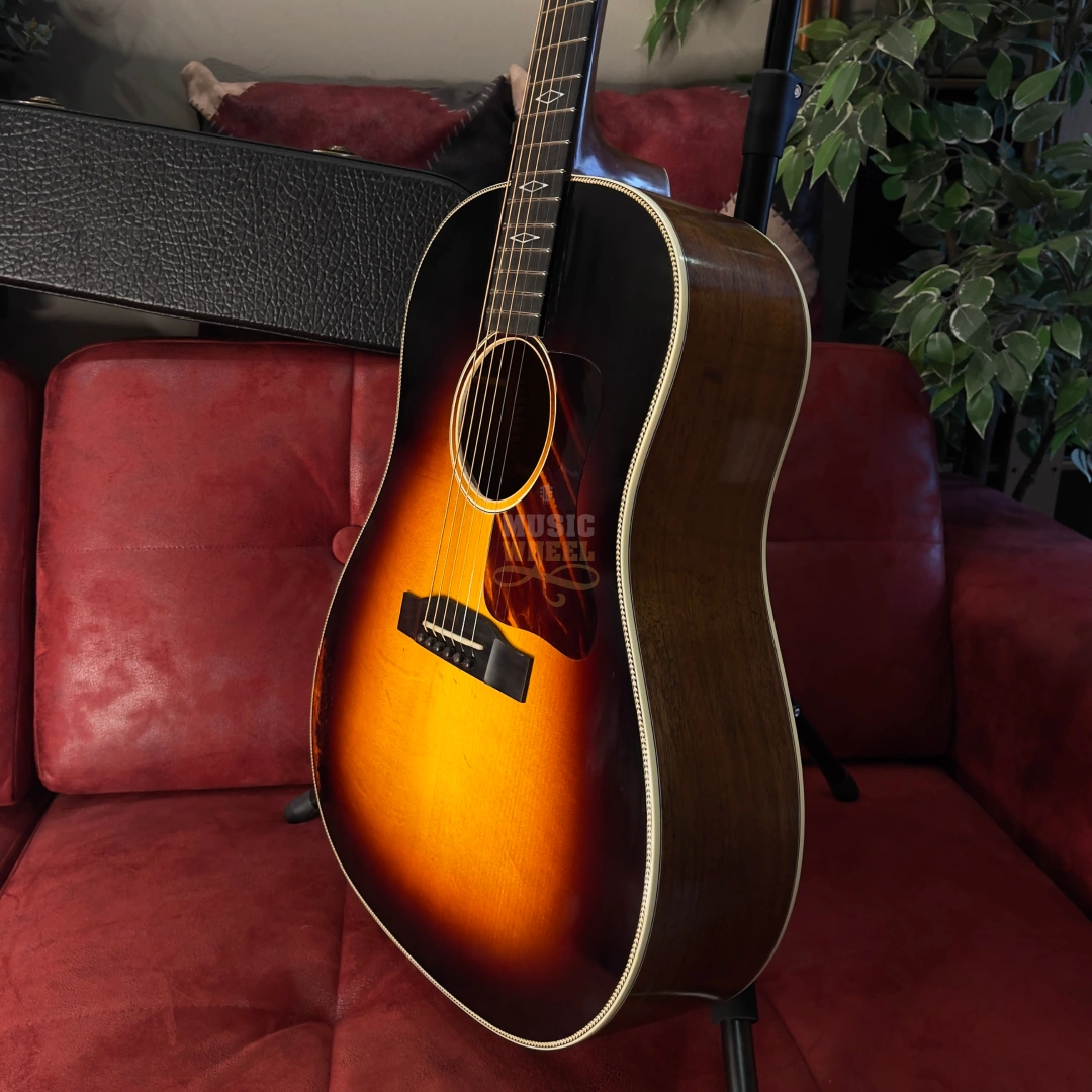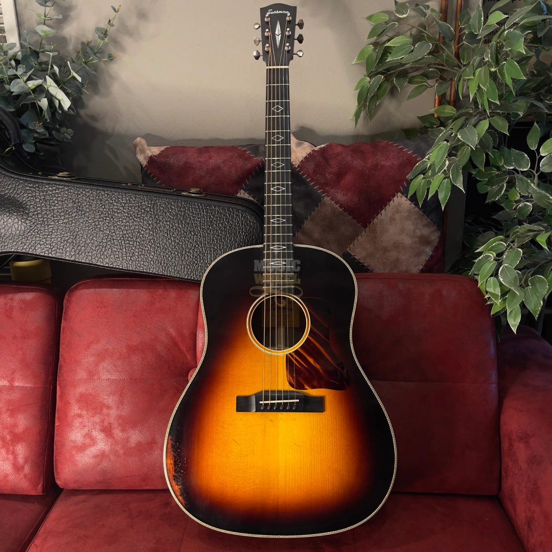 Eastman E22SS/V-SB je vintage-stil slope-shoulder dreadnought akustična gitara s prednjom pločom od pune Adirondack smreke te zadnjom i bočnim stranicama od punog oraha. Zvuči otvoreno, bogato i izražajno. Antique Varnish završna obrada i firestripe piguard daju joj „stari šarm“, a kraća menzura 24.75“ olakšava sviranje. Ova gitara retro izgleda te toplih srednjih, sjajnih visokih i okruglih bas tonova uz vrhunsku izradu spaja vintage dušu i moderni komfor. Kad je jednom zasvirate, teško ju je vratiti na stalak. Model dolazi sa čvrstim koferom (hardshell case).