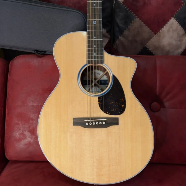 MARTIN SC-13E-01 FG elektro-akustična gitara s prednjom pločom od pune sitkanske smreke te zadnjom i bočnim stranicama od finog koa laminata (Koa Fine Veneer). Sa svojim patentiranim Sure Align® sustavom vrata daje vam potpuni pristup svim pragovima kako biste mogli jednostavno dosegnuti i visoke tonove. Vrat je tehnički izveden na način da se ergonomski prilagođava ruci kako se svirajući kreće po vratu, pružajući udobnost i osjećaj sviranja kao kod električne gitare. Model je dizajniran za što jednostavnije sviranje na struju, a njezin asimetričan oblik tijela omogućava uravnoteženo kretanje i bolju jačinu zvuka. Ovo je super udobna elektro-akustična gitara koju je izuzetno lako svirati. Finiš gitare je visoki sjaj. Model dolazi s laganim koferom.